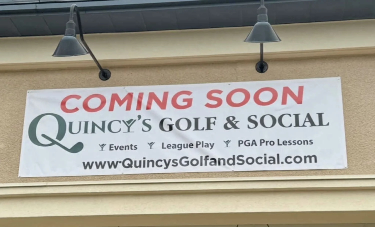 Coming Soon Signage Up for Quincy’s Golf & Social in Gaithersburg.